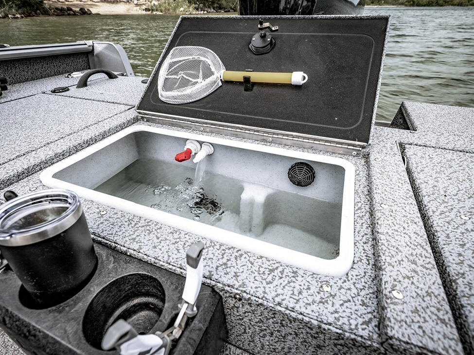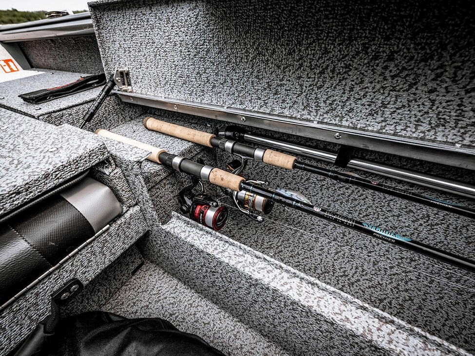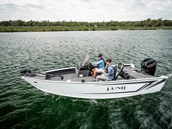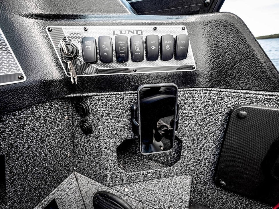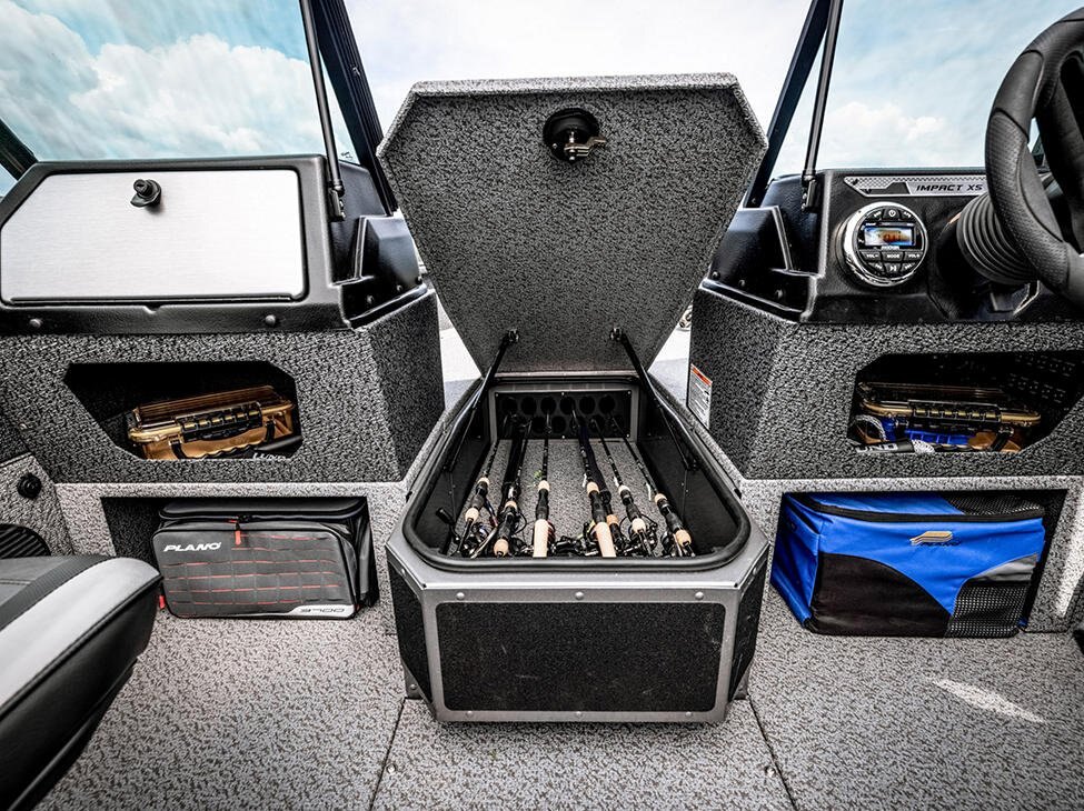 The 1775 Lund Impact XS sports a full windshield to comfortably protect the entire family. The family fishing boat features include a center rod locker two livewells large casting decks and even a ski pylon optioins for family fun. There's even a boarding ladder and rear flip seats to accommodate the entire family and friends.