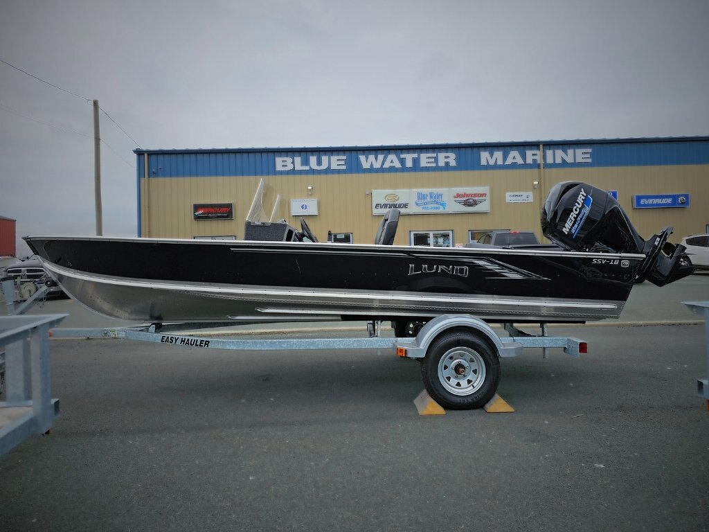 This boat package includes a 2023 Lund SSV18 Dual Console (Black), 2024 Mercury 60HP (ELPT) SeaPro and Easy Hauler 1822BG.