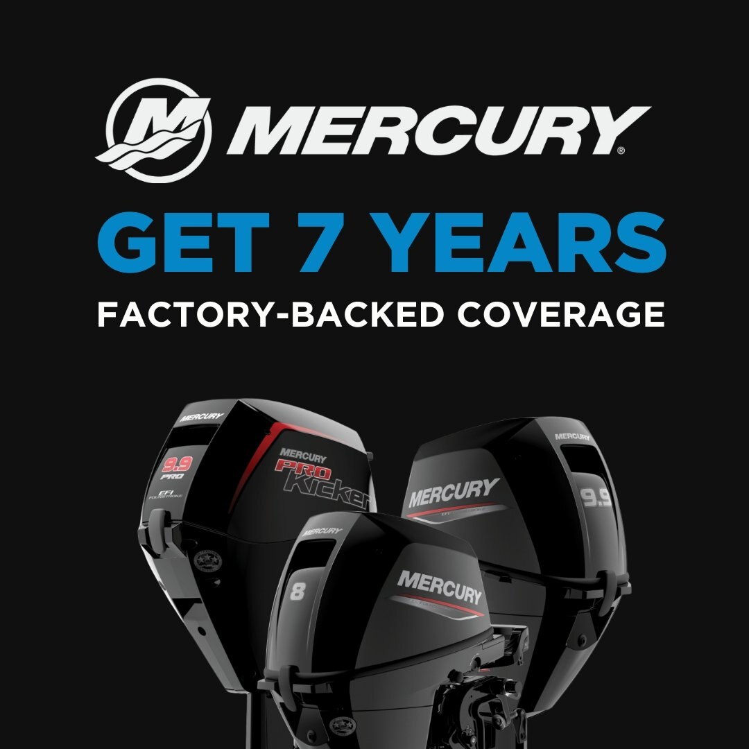 Performance meets peace of mind with the Get 7 extended coverage offer from Mercury. When you purchase a new 2.5-425hp Mercury outboard as part of a new boat package or to repower your current boat between now and March 31, you’ll receive a total of 7 years of factory-backed coverage. That’s the standard 3-year limited warranty plus an additional 4 years of factory-backed Mercury Product Protection Gold coverage. This offer ends March 31,2026, so call or visit us today to learn more!